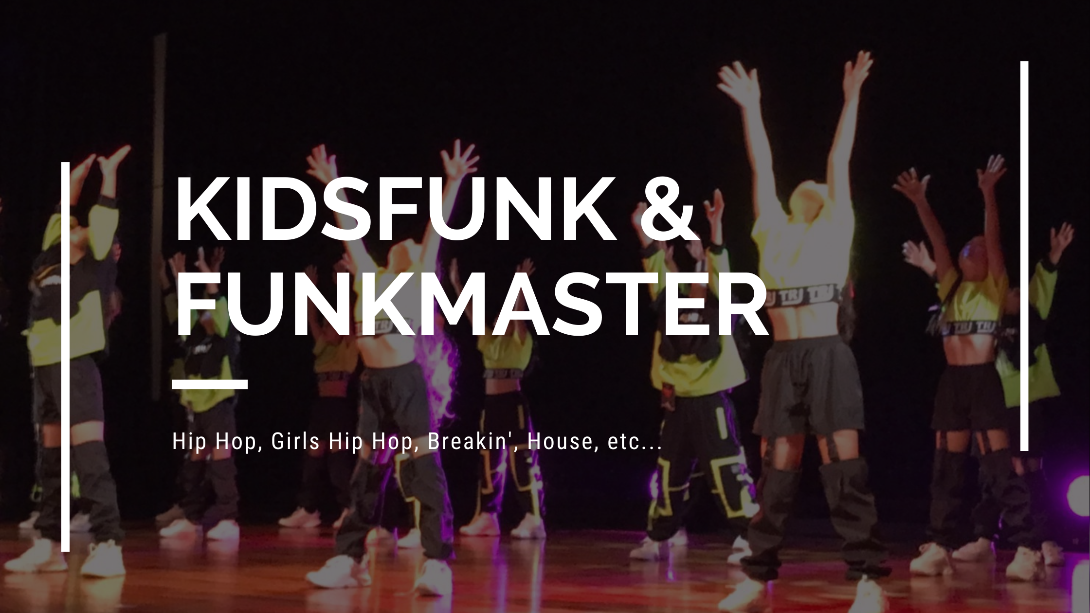 25年以上の歴史を持つダンスサークル「キッズファンク・ファンクマスター」。4才~大人まで、ダンスが大好きな子ども達が集まってレッスンを受けています。あらゆるジャンルのストリートダンスに触れ、踊る楽しさや表現する喜びを一緒に体感してみませんか?もちろん、初心者さん大歓迎です!
